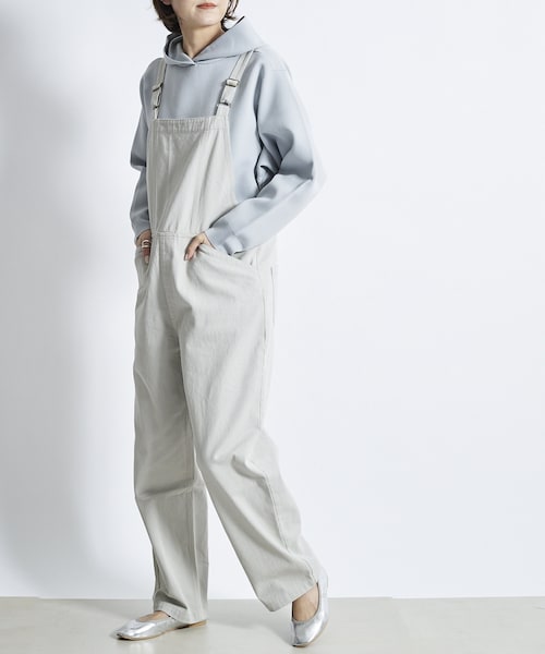 \女性らしさが垣間見えるオーバーオール♪/今季もまだまだ大注目のオーバーオールが登場!ロングシーズン愛用出来るデニム素材。春夏の雰囲気にマッチする明るいカラーのデニムが新鮮な雰囲気に。デニムでは珍しいライトグレーと、アイボリーはヴィンテージ感を出すため、敢えて綿カスを残して生地に表情を出した拘りのカラー。少し小さめに作った胸当てとバックは大きく開けた背中が、カジュアルなアイテムながらも女性らしく見えるポイントです。カットソーはもちろん、デザイン性のあるブラウス合わせや、カーディガンを羽織ったスタイルなど様々なコーディネートが楽しめます。*********************・まだまだ大注目!!・春夏らしい新鮮な明るいカラーのデニム・女性らしいデザインをプラス*********************【 ♥ をクリックでお得な情報をお知らせいたします 】〈 商品のお気に入り登録 〉 お気に入りアイテムのお値下げ・再入荷・在庫ラスト1点など通知を受けることができます。〈 ブランドのお気に入り登録 〉DOUDOUの新商品や再入荷、セール、クーポン配布などお得な情報を受けることができます。--------------------------------------※ 掲載画像の商品の色味は、 撮影場所や光の当たり具合などにより色味が異なって見える場合がございます。 また、お客様のお使いのPC・スマートフォン等のモニター環境などにより色味が異なって見える場合がございます。予めご了承の上ご注文ください。 ※着用、お取り扱いの際は、商品についている品質表示とアテンションタグを必ずご確認下さい。