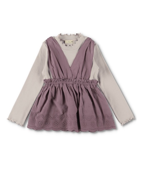 重ね着風デザインは1枚で簡単にレイヤードスタイルが楽しめる人気アイテム♪胸下からふんわりとしたシルエットが可愛いチュニックとインナーの重ね着デザインです。 裾にあしらったカットワークレースが上品で可愛い♪
