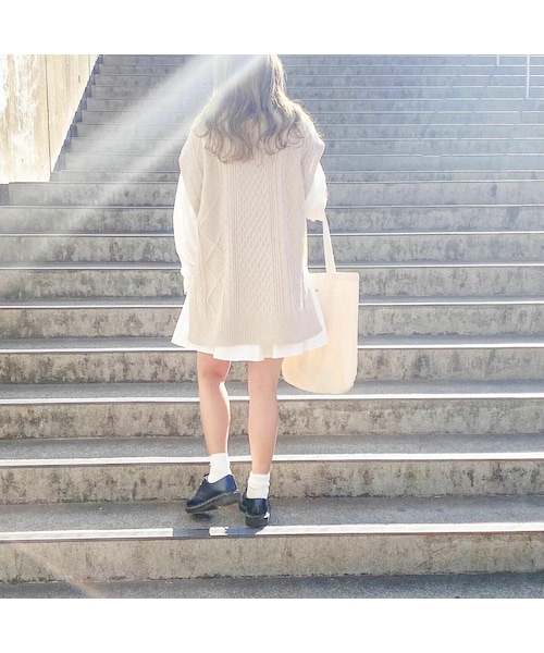 ゆるい丈感で可愛く着れる ケーブルニットベストが登場! サイドスリットになっていて ワンピースとのレイヤードの相性も◎ model:153cm ■カラー:ライトベージュ ■サイズ:【F】着丈約72cm 肩幅約57cm ※数センチの誤差が生じる場合があります。 ※在庫状況によりキャンセルさせていただく場合がございます。 ※仕入れ工場を変えることがあるため、記載サイズと若干異なる場合がございます。