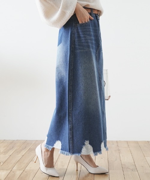 裾ダメージがアクセントになるデニムスカートが新登場です★ほんのり裾広がりでタイトすぎないペンシルシルエットが楽に着こなせるスカートです^^バックポケットがアシンメトリーでフェイクポケットになっており、後ろ姿も気を抜かずおしゃれに見えるデザイン♪切替部分もアシンメトリーになっているのもワンランク上のおしゃれコーデに引き立ててくれます◎程よいウォッシュ加工がすっきり細身え効果もプラスしてくれる嬉しい1枚!!オールシーズンで大活躍間違いなしなデニムスカートは必見ですよ☆★サイズS:着丈87.5cm, ウエスト67cm, ヒップ91cm, 裾幅115cmM:着丈88.5cm, ウエスト70cm, ヒップ94cm, 裾幅118cmL:着丈89.5cm, ウエスト73cm, ヒップ97cm, 裾幅121cmXL:着丈90.5cm, ウエスト76cm, ヒップ100cm, 裾幅124cm★生地:コシのあるしっかりとしたデニム生地★伸縮性:なし★透け感:なし★裏地:なし▼商品の色は物撮りをご参照ください。※モデル着用写真は外光の強い元で撮影しているので実際の色よりも明るく写っております。※掲載画像につきましては、撮影環境やお客様の閲覧されますパソコンや携帯電話キャリアによって、実際の商品とは多少異なったお色に見える場合も御座いますので予めご了承下さいませ。モデル着用画像はサンプルのため、色味やサイズ等の仕様に多少の変更がある場合がございます。----------------------INFORMATION----------------------▼商品のお気に入り登録お気に入りの商品やサイズ・カラーまで、お気に入りの登録をしていただきますと、そのアイテムのセールの通知、ラスト1点になった時の通知や、完売しても再入荷通知を受け取ることができます!▼ブランドのお気に入り登録新商品の発売や再入荷、タイムセールやクーポン発行のお知らせなど、Futier landがお届けするお得な情報を受け取ることができます!※通知はアプリでも受け取ることができますので、是非アプリの通知設定をお願い致します!------------------------------------------------------------