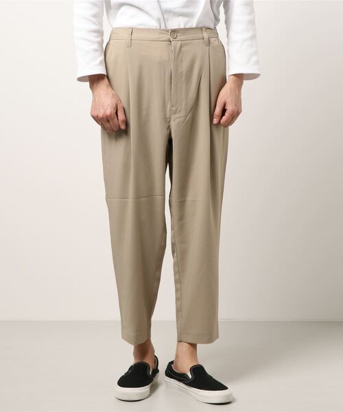 ワイドシルエットがおしゃれなテーパードパンツが登場。シンプルでどんなコーデにもマッチ。ラフな着心地でデイリー使いもしやすいアイテム。・オフィスカジュアルにもおすすめ・着回しのきくシンプルアイテム・普段使いもしやすいラフなシルエット・同素材ジャケットとのセットアップも可能