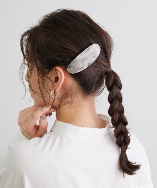 柔らかな仕上がりのマーブルカラーバレッタ。DESIGN ・纏めた髪の毛に沿うようにカーブをつけたヘアバレッタです。 ・ラウンドを描くクラシカルなデザインが印象的。 COLOR/COORDINATE ・グレー、アイボリー、ブラウンのベーシックカラー3色展開。 ※撮影時の光、お使いのモニター環境によって色の見え方が違う場合がございます。
