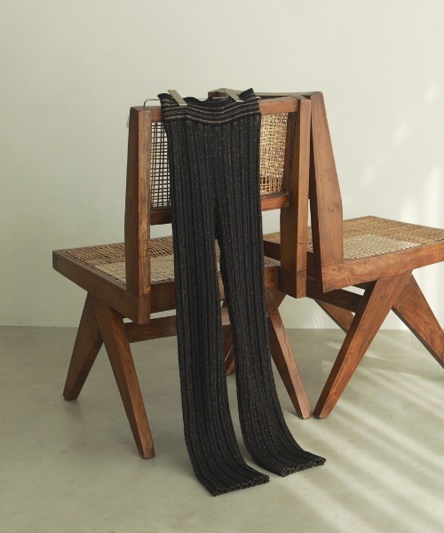 立体感のあるリブ素材のニットパンツ。2色の糸を引き入れながら編み、絶妙なカラーと表情を出しています。レギンスのように、ヒップの隠れる丈のトップスやワンピースとレイヤードするのがおすすめ。 同じ編地を使用したRandomrib Knit Dressとセットアップで着るのもおすすめです。