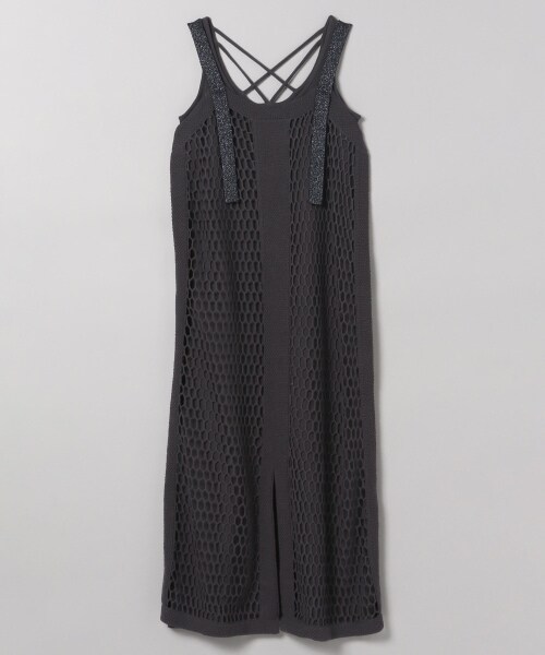 糸をネット上に編み、透け感を出したワンピースです☆肩ひも部分にはラメ糸を入れてポイントに♪さらっとした肌触りなので夏にもピッタリの一着です!またインナーのワンピースもバッククロスになっており1枚での着用も◎アウターのネットワンピースも、Tシャツやデニムの上に重ねて着るのもおすすめです♪フロントスリットも今年らしい、トレンド感のあるデザインになっています☆