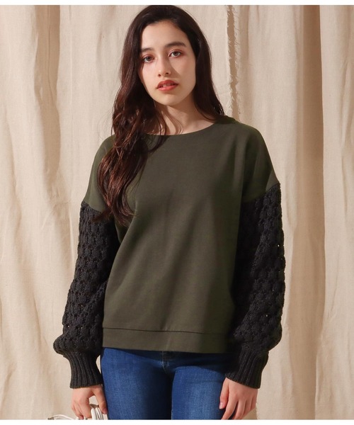 デザイン性のある透かし編みが可愛いアイテム。 マンネリしがちなスウェットスタイルをブラッシュアップしてくれます。 【STYLING】 シンプルなボトムとはもちろん柄ボトムとのコーディネートもおススメです。 合わせるものでカジュアルにも甘目にも寄せれる万能デザイン。 【DETAIL】 袖のポップコーンスリーブが一癖のある1枚。 ゆったりしたシルエットですが、短めの丈なのでロングスカートやボリュームのあるボトムとも相性◎ ※ストレッチあり ※裏地なし ※アイボリーは若干透ける素材になっております。 ※袖は透ける素材になっております。 ※一部ニット素材のため、伸縮性があり記載しているサイズと若干異なる場合がございます。予めご了承ください。 ※商品のお取扱いに関しましては、商品に付属のアテンションカード、洗濯ネームをご覧ください。 ※モデル着用画像は光の当たり具合で色味が違って見える場合がございます。 実物の商品の色味はマネキン着用画像をご参照ください。 【お買いものをお楽しみいただく為に!】 ▼商品のお気に入り登録 完売カラーの再入荷通知や、ラスト1点の通知、セールの通知も受け取ることができます。 ▼ブランドのお気に入り登録 新商品や再入荷など、いち早くブランドのお得な情報を受け取ることができます。