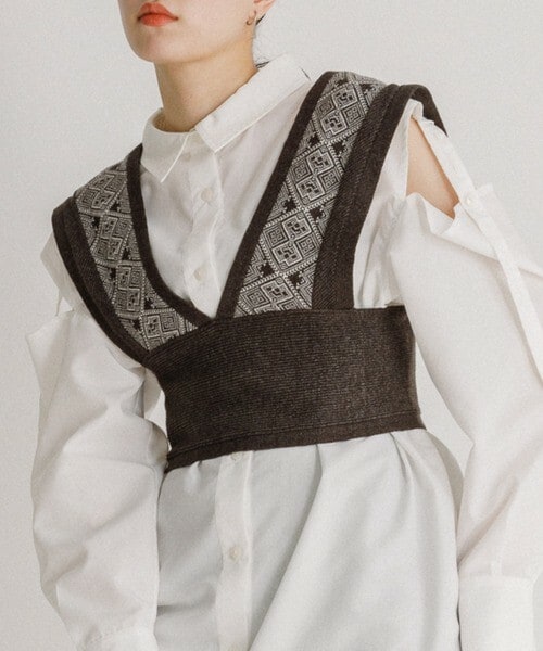 - 2021 VACANCY SPRING COLLECTION - ◆バックデザインも抜かりなくお洒落を楽しめるビスチェ 【特徴】 VACANCYイチオシの トレンドのジャガード柄をあしらったビスチェが新登場! 別で販売中のジャガード柄ニットワイドパンツと セットで着るとセットアップ感覚で着られます。 ビスチェの短い丈感が 全体のバランスを良く魅せてくれて足長効果も◎ 後ろのリボンはお好みに合わせて 結び方の調節が可能。 その日のコーディネートに合わせて楽しめます♩ 【スタイリングポイント】 シャツ合わせやロングワンピースの 上からレイヤードすると◎ コーディネートに 「あとひとつ」アクセントが欲しい時に お持ちのトップスと合わせると ワンランク上のお洒落を楽しめます!