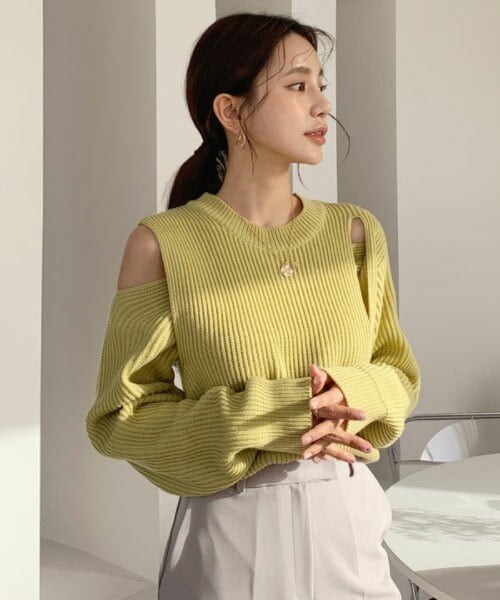 アンバランス感がユニークなニットトップス。肩の露出とスリットがポイント。端正なラウンドネックデザインです。 ※WEARに記載してある金額と、DHOLIC通販サイトに記載してある金額にシステム都合上、稀に誤差が生じます。正しい金額はDHOLIC通販サイトに記載された金額です。