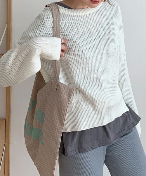 端正なラウンドネックデザインです。 編み感がポイントのニットで 華奢に見えるルーズフィット。 ※WEARに記載してある金額と、DHOLIC通販サイトに記載してある金額にシステム都合上、稀に誤差が生じます。正しい金額はDHOLIC通販サイトに記載された金額です。