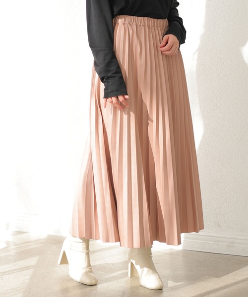 くすみカラーのフェイクレザーで、モダンフェミニンな雰囲気に仕上げたスカート。細やかなプリーツ加工が優しく揺れて、エレガントな女性らしい印象を演出してくれます。ウエストはゴム仕様で穿き心地もノンストレス◎オンにもオフにも活躍してくれる、大人女子のワードローブに備えておきたいアイテムです。● earth music&ecology ●(アース ミュージック&エコロジー)流行とナチュラル感を取り入れ、幅広い層に向けて発信するブランド。オシャレ着から通勤、カジュアルまで女性の様々なシーンで楽しんでいただけるナチュラルガーリッシュなアイテムを展開。 ▼ 商品のお気に入り登録がおすすめです ▼商品ページ内のハートマークをクリック。完売時の再入荷や、最後の1点の通知、コーディネート画像がアップされたとき、お得なお値下げの際の通知を受ける事ができます。【お知らせ】ページでも通知が確認できます。