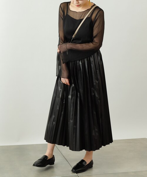 【今年トレンドのチンツ加工を施したプリーツスカート】生地に光沢を加えるチンツ加工の効果で合皮のような見え感に仕上がっています。トレンド感を出すことができる艶っぽい生地がスタイリングのアクセントに。ふわっと揺れる動きのあるシルエットで女性らしい印象に。後ろはゴムになっており着脱しやすく、ストレスフリーで着用いただけます。トップスを選ばず、様々なシーンで着こなしをモードな印象に仕上げてくれる1着。・ソフトな風合いのレザーのように見えるチンツ加工のスカート・プリーツの縦ラインで下半身をすっきりと華奢にみせてくれます・着回しがよくON/OFF問わず使えるアイテム【コーディネート】ボリュームのあるトップスとのコーディネートもおすすめです。 縦を強調したニットやトップス合わせがスタイルアップに。 ゆるっとロンTやスウェット/トレーナー、パーカーでカジュアルダウンしても今年らしい着まわしが完成します。コートやジャケットなどアウターにも合わせやすいアイテムです。 足元はスニーカーはもちろん、ショートブーツや厚底、ロングブーツとの相性も◎ 同素材のシリーズもおススメです。品番:CWA1011201A0003 チンツ加工プリーツSK品番:CWA1011204A0013 ンツ加工キャミソール品番:CWA1011209A0006 チンツ加工キャミOP着用スタッフ 157cm■素材・洗濯についてポリエステル100%洗濯:手洗い可※この商品はプリーツ加工を施していますが、永久的なものではありません。ご着用やお洗濯でプリーツは消失します。※ご着用・お洗濯の繰り返しにより、徐々に生地表面の光沢や色が薄くなります。擦れ易い部分は白くなりますが、素材特性としてご了承下さい。雨や水に濡れた場合は、こすらずにタオル等で湿気を吸い取るようにして下さい。裏返して洗う事をおすすめします。※濃色は色落ちする可能性がありますので、他の物とのお洗濯はお避け下さい。生成り・淡色には蛍光増白剤の入っていない洗剤をご使用下さい。長時間の水への浸漬はお避け下さい。洗濯後は速やかに形を整えて陰干しをして下さい。乾燥機のご使用はお避け下さい。※着用、お取り扱いの際は、商品についている品質表示とアテンションタグを必ずご確認下さい。※商品タグに記載されている商品名がWEBでの表記名と異なる場合があります。※画像の商品はサンプルです。実際の商品と仕様、加工、サイズが若干異なる場合がございます。 ※照明の関係により、実際よりもやや明るく見える場合がございます。またパソコンなどの環境により、若干製品と画像のカラーが異なる場合もございます。予めご了承くださいませ。 【お気に入り登録】してお得な情報をCHECK!!・「商品のお気に入り登録」で再入荷通知や、ラストの通知、セール通知も受け取ることができます。・「ブランドのお気に入り登録」で新商品や再入荷など、お得な情報を受け取ることができます。__________________________________________________________