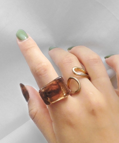 [ SS2021 / minia ]マーブル模様のクリア素材が季節感プラストレンドのスクエアフォルムの存在感あるリングです。歪み加工を施しているので柔らかい女性らしい雰囲気に。人差し指・中指にぴったりのサイズ感で、普段遣いにGOOD。シルバーやゴールドなどメタリックカラーのリングと合わせて異素材の重ね付けもおすすめです。-----------------・クリア…無色透明のクリア・ブラウン・…クリア地にブラウンのマーブル模様・グリーン…クリア地に薄くくすんだミントグリーンのマーブル模様・パープル…クリア地に濃い赤紫のマーブル模様-----------------●トップサイズ…スクエア幅約2cm×縦1.2~1.5cm-----------------minia/ミニアいつものコーデにプラスするだけでトレンド感がUPするような、靴やバッグ・ピアスなどアクセサリーを提案。結婚式やパーティ・二次会でも使えるシンプル上品なアイテムから、通勤・オフィスカジュアル・通学などデイリーユースに使えるカジュアルな定番アイテムまで。トレンド感たっぷりのアイテムはプレゼント/贈り物/お返しにもぴったり。試しやすいプチプライス~素材や機能性にこだわったアイテムまで幅広くラインナップ。姉妹ブランドに『alala』『Una gardenia』『Hercheek』。※お使いのモニターや閲覧環境により、実際の色味と違って見える場合がございます。※製作・輸送時に発生した微細なキズがみられる場合がございます。※使用素材の特性上、パーツの形や色味・マーブルの出方・天然素材の色味など僅かな個体差があり、左右でもばらつきが見られます。これらは不良の対象外となりますので、予めご了承くださいませ。
