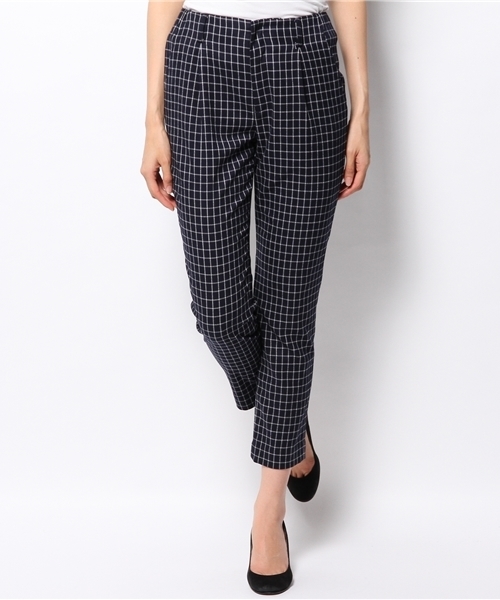 シックなカラー使いが大人らしいクロップドパンツ。細かいチェック柄でモードな雰囲気に仕上げました。 ウエストのサイドゴムで履き易さもポイント。足首見せにちょうど良い丈なので、ヒールパンプスなどと合わせれば脚をすらっと綺麗に見せてくれます。オン・オフ問わず使いやすいアイテムを是非いかがでしょうか。 店舗へお問い合わせの際は下記品番をお伝えください。 品番:52-23-0150-559
