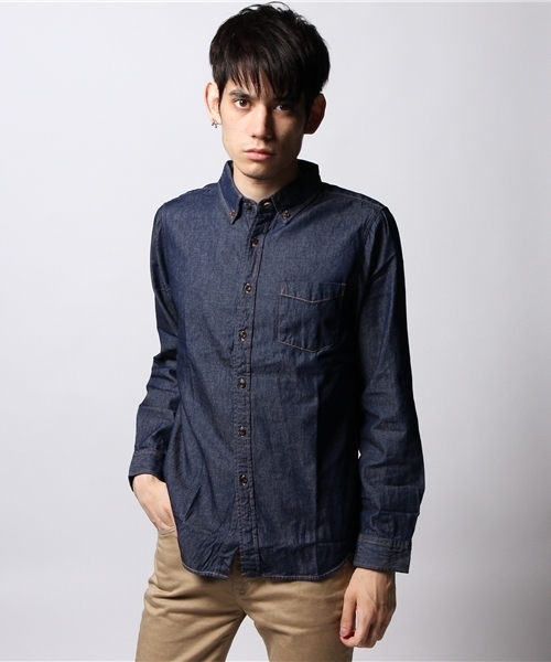 ビンテージライクな質感が魅力のデニム長袖シャツ。 ダークインディゴ、ミドルインディゴ、ライトインディゴの3色をご用意。 シルエットはスッキリとしたスリムタイプで、土臭くなりがちなデニムシャツをキレイ目な雰囲気に仕上げています。 パンツは定番のチノやカーゴは勿論、デニムと合わせてセットアップ風に着こなすのもオススメ。 秋冬は勿論、シーズンを問わず長く着て頂ける定番アイテムです。 modelH182 B92 W71 H90 着用サイズ:LARGE