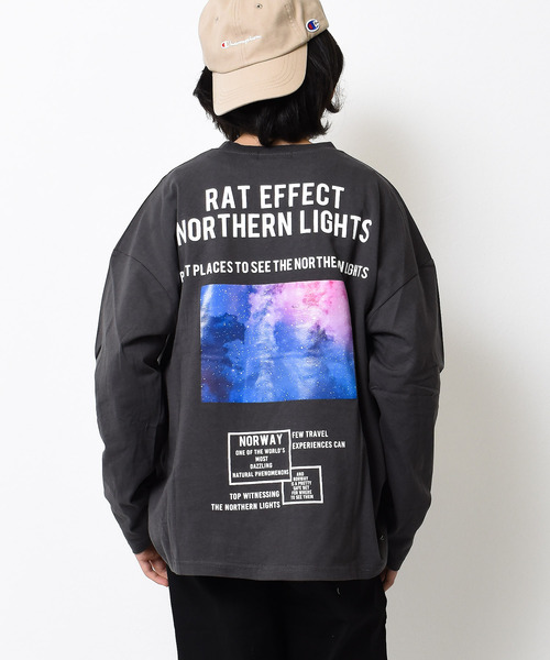 フォトプリントロングTシャツ今期も注目のフォトプリントロングTシャツです。オーロラモチーフのフォトプリントが大人デザインでオシャレな雰囲気に。ビッグシルエットなのでトレンドスタイルを楽しめる1枚です。