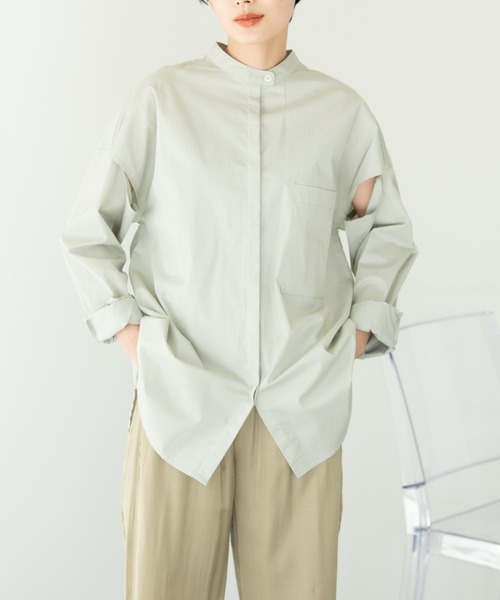 【ショルダースリットバンドカラーシャツ】脇のスリットがさりげなくアクセントになる1枚POINT・首元すっきりのバンドカラーが抜け感を演出・シンプルなデザインで、テイスト問わず着回しが可能です。・季節を問わない素材の為、メインとして、レイヤードアイテムとして、オールシーズンお使いいただけるアイテム。COORDINATE身幅、アームともにオーバーサイズシルエットになっているので、1枚ではもちろん、軽い羽織りとしても活躍。バックが長めの丈感で腰回りをカバーしてくれるため、タイトシルエットのボトムとも合わせやすい1枚。脇スリットから腕を出して着ていただくのもおすすめです◎-------------------------裏地‐--なし透け感---あり伸縮性---なし生地感・厚さ‐‐‐薄手季節---オールシーズン-------------------------※柔らかい生地の為引っ掛けなどにはお気を付けください。※画像の商品は光の照射や角度により、実物と色味が異なる場合がございます。※製品によっては染料の特性上、湿った状態や汗をかいた状態での長時間の放置、または摩擦により、他のものへ色移りする恐れがありますので、着用時にはご注意下さい。 ※お洗濯は洗濯ネットを使用し、他のものとの混合洗いはお避け下さい。色落ちや色移りの原因となります。 タンブラー乾燥はお避け下さい。 ※風通しがよく、湿気の少ない日の当たらない場所で保管して下さい。 ※また製品加工上、お手元に届く際に匂いが生じる場合がありますが、 ご使用を続けていく事により匂いは軽減されます。■商品のお気に入り登録お気に入りアイテムの値下げ・再入荷・在庫1点などの通知を受け取ることができます。■ブランドのお気に入り登録新商品や再入荷、セール、クーポン配布などお得な情報を受け取ることができます。---------------------------------------------------------------Solace/ソレイス“MODE”媚びない自分らしいシルエット“CASUAL”シーンレスで手に取りやすいプライス“ART”どこかエッジのある遊び心トレンドにとらわれず “自分” とマッチするスタイルを提案※他のキャンペーンにより、期間中に価格が変動する場合があります。※セールは予告なく終了させていただく場合もあります。