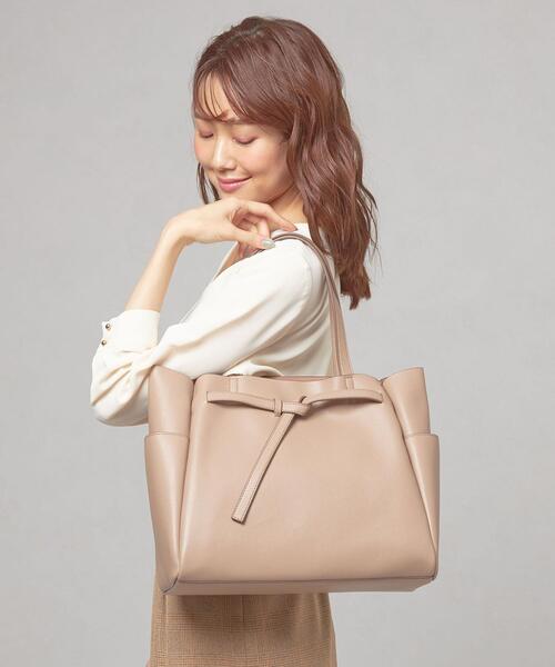 落ち着いた色合いで季節問わず活躍する「モカ」が新登場!■デザインフロントの華奢なベルトをくるっと結び、シンプルなデザインの中に個性を与えています。A4サイズの書類などを収納できる大きさや、小物の仕分けに便利な多数のポケットも嬉しいポイント。■素材上品なシボ感と柔らかく扱いやすいフェイクレザーを使用した、ニュアンスのあるカラーも魅力。■コーディネート合わせるスタイルを選ばず、通勤から休日のおでかまで幅広いシーンにお使いいただけます。<closet story>フレンチシックとブリットモダンがテーマのオリジナル企画レーベル。若々しさと可愛らしさをもったエレガントなスタイルをベースに、都会的で今日を生きる女性が「自分らしさ」を大切にしたいときに揃えたいアイテムを提案します。店舗へお問い合わせの際は、全国のTHE STATION STORE各店舗まで下記の品番をお申し付け下さい。品番:6932-699-0993