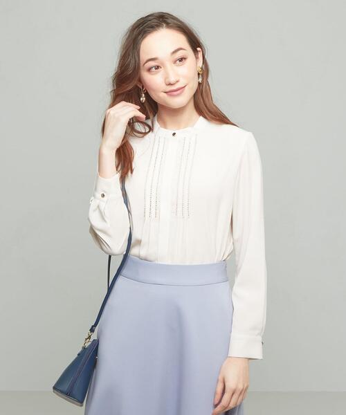 薄手のジョーゼット生地にハシゴレースをあしらったブラウス。襟元がすっきり見える小さめのスタンドカラーに、フロントのデザインを引き立てるボタンが見えない比翼仕様がスタイリッシュな仕上がり。かしこまり過ぎないハシゴレースや女性らしさをプラスする袖タックなど、フェミニンなディテールも取り入れています。清潔感のある色合いはオンオフ兼用でお使いいただけて、一枚着としてはもちろんジャケットのインナーとしてビジネスシーンにもおすすめです。同デザインの素材・色違い(6911-699-0383)をご用意しています。____________________透け感:ややあり伸縮性:なし裏地:なし____________________<closet story>フレンチシックとブリットモダンがテーマのオリジナル企画レーベル。若々しさと可愛らしさをもったエレガントなスタイルをベースに、都会的で今日を生きる女性が「自分らしさ」を大切にしたいときに揃えたいアイテムを提案します。店舗へお問い合わせの際は、全国のTHE STATION STORE各店舗まで下記の品番をお申し付け下さい。品番:6911-699-0343