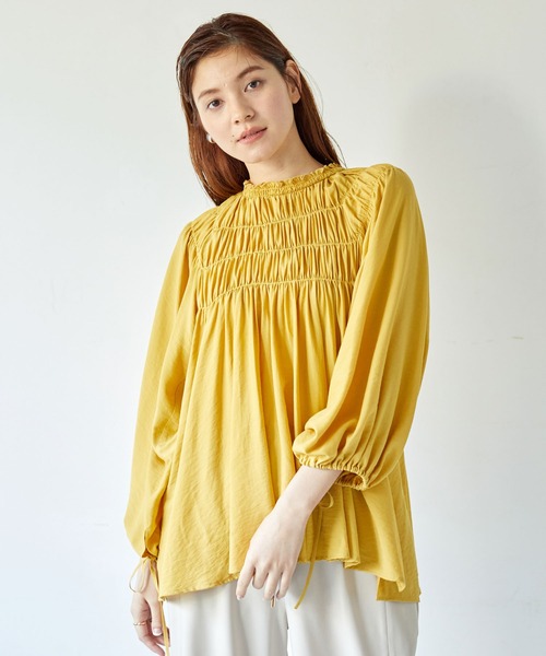 ふんわり揺れるドレープシルエットがフェミニンなブラウス。フロントのシャーリングデザインが動きのある表情をメイクします。袖口のリボンで好みのニュアンスに調節可能。ヒップにかかる長めの丈感や、ゆったりとしたラグランスリーブもポイント。綿タッチのソフトな生地使いで、軽やかな印象をスタイリングにプラスするアイテムです。 - Editt by YECCA VECCA -(エディット バイ イェッカ ヴェッカ)着心地のよいシルエットに都会的でエッジの効いたディテール使いで仕上げたモードなアイテム。YECCA VECCAというフィルターを通して編集する(=Edit)こだわりを持ち続ける大人の女性のためのカジュアルクローズを提案。 ▼ 商品のお気に入り登録がおすすめです ▼商品ページ内のハートマークをクリック。完売時の再入荷や、最後の1点の通知、コーディネート画像がアップされたとき、お得なお値下げの際の通知を受ける事ができます。【お知らせ】ページでも通知が確認できます。