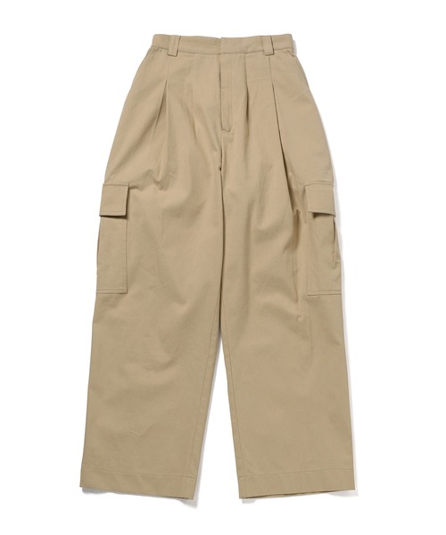 着心地抜群!21S S オススメNo.1のコットンツイルのカーゴジョガーパンツ【Material】上品な微光沢感が感じられるコットンツイルを採用。【Design】ミリタリーアイテムのカーゴパンツを綺麗めに落とし込んだ生地の自然な微光沢感が上品な印象のカーゴジョガーパンツ。クリーンなソリッドカラーも魅力で、女性らしい雰囲気に穿きこなせる1本です。ワイドながらも、裾に向かって絞ったシルエットや、サイドのカーゴポケットが今年らしく、無駄な装飾を省き、着心地の良さを追求。背面のウエスト部分はゴム使用。ポケットもたくさんあり、便利性も◎ベーシックなブラック・ベージュ・他では見られないスカイブルーの3色展開。トップスはパーカー、Tシャツタンクトップなど、カジュアルにも、エレガンスにも着こなせる。21S S オススメNo.1のパンツとなります。【関連品番】ZPS61000----------透け:なし裏地:なし伸縮性:あり光沢感:なし生地の厚さ:普通ポケット:あり----------【スタッフレビュー】ワイドだけど裾に向かってすぼんでいてウエストの締まりによりシルエットがとても綺麗なカーゴパンツ。ウエストは締まって見えますが背面部分のみについているゴムで楽々過ごせます。TEEにもフーディーにもどんなトップスでも決まるやや光沢のある生地でかっこいいパンツです!