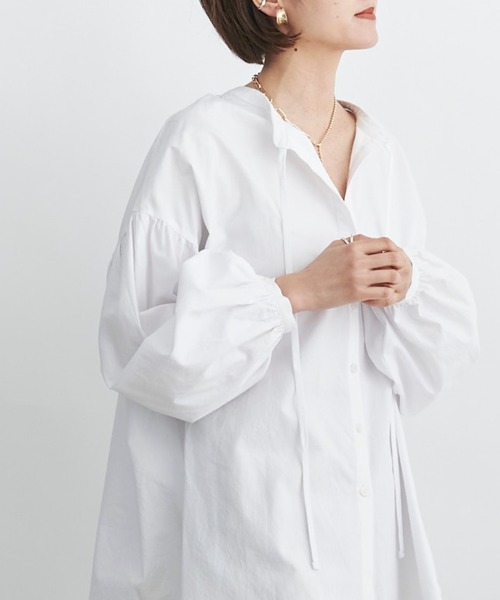 \春先に1枚で映えるブラウス/前後2WAYで雰囲気を変えた着こなしが叶うブラウス。 コットン100%のナチュラルで着心地の良い素材。ドロップショルダーに仕上げたシルエットが程よいルーズ感を演出し、大人の余裕を感じられる1着です。ショルダーラインと袖口にギャザーを寄せ、ボリューム感を作った袖シルエットがポイント。どちらのデザインを後ろにしても抜け感のある肌見せを女性らしく演出できます。前後でガラリとイメージが変わるので、インナーやボトムに合わせて様々な着こなしを楽しめるアイテムです♪ ********************* ・前後2WAY仕様 ・コットン100%で着心地◎ ・ボリューム感のあるお袖がポイント ********************* 【 ♥ をクリックでお得な情報をお知らせいたします 】 〈 商品のお気に入り登録 〉 お気に入りアイテムのお値下げ・再入荷・在庫ラスト1点など通知を受けることができます。 〈 ブランドのお気に入り登録 〉 DOUDOUの新商品や再入荷、セール、クーポン配布などお得な情報を受けることができます。 -------------------------------------- ※ 掲載画像の商品の色味は、 撮影場所や光の当たり具合などにより色味が異なって見える場合がございます。 また、お客様のお使いのPC・スマートフォン等のモニター環境などにより色味が異なって見える場合がございます。予めご了承の上ご注文ください。 ※着用、お取り扱いの際は、商品についている品質表示とアテンションタグを必ずご確認下さい。