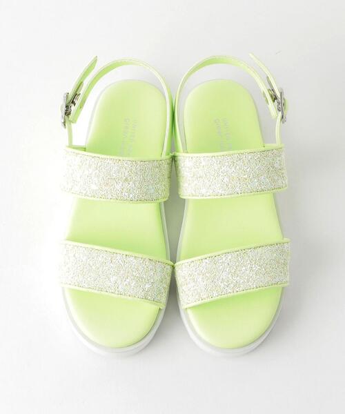 グリッターのストラップと少しボリューム感のあるソールが今シーズンの気分にぴったりなサンダル。足首のストラップはスナップボタンで着脱しやすい仕様です。素足にはもちろんソックス合わせもオススメなので様々な着こなしで活躍してくれます。※モデル着用画像はイメージです。実際の製品とカラーが若干異なって見える場合があります。正しいカラーは詳細画像をご覧ください。※画像の商品はサンプルです。実際の商品と色味、仕様、加工、サイズ、素材等が若干異なる場合がございます。店舗へお問い合わせの際は、全国のgreen label relaxing各店舗まで下記の品名/品番をお申し付け下さい。品名:GLR サンダル/ホワイトソール 18-22 品番:3831-199-1116