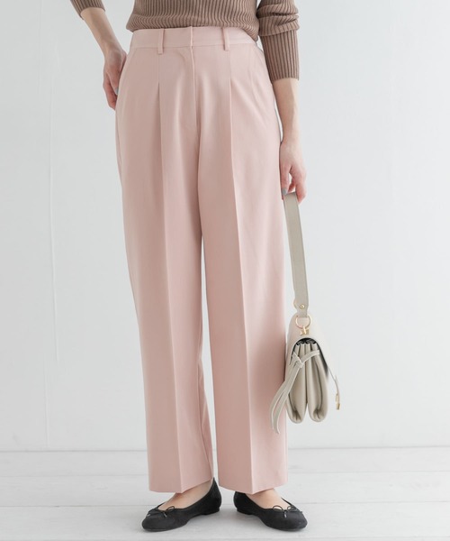 程好いワイドシルエットでリラックスして着用出来るカラ―パンツ。タックを施し後ろウエストはゴム仕様にして、きれい見えとイージーな履き心地を兼ね備えた一本です。-----------------------------透け感 : なし伸縮性 : ややあり裏地 : あり(膝下まで)光沢 : なしポケット : あり-----------------------------※商品画像は、光の当たり具合やパソコンなどの閲覧環境により、実際の色味と異なって見える場合がございます。予めご了承ください。※商品の色味の目安は、商品単体の画像をご参照ください。