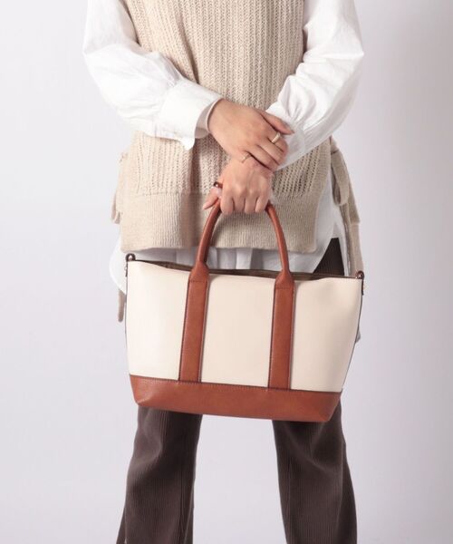 ◇FREDY REPIT◇ 【2021SS】 機能性抜群のフェイクレザートートバッグ ●フェイクレザーを組み合わせることで、きれいめカジュアルな印象に。 ●バッグ内側のスナップで取り付けられるポーチも付属。ショルダーを付けて、バックとしても使用可能です。 ●バッグの中身を隠せるフラップが付いているので、電車内やオフィスなど、人目が気になる時も安心。 ●広めのマチでお弁当箱やマイボトル、折りたたみ傘や化粧ポーチも余裕で収納。付属のポーチに小物も収納でき、あらゆる持ち物の整理整頓が叶います。 ●お取扱い上のご注意● *アテンションタグを必ずご確認の上、着用又はお取り扱い下さい。 *店頭及び屋外での撮影画像は、光の当たり具合で色味が違って見える場合があります。商品の色味は、スタジオ撮影の画像をご参照下さい。 *商品画像に関しては出来る限り忠実に表示出来るよう努めておりますが、お客様がご利用のモニターの設定及び特性により、実際の商品と比較し色味に若干の誤差が生じる場合があります。 内側ポケット:3 付属品:ポーチ ◇商品のお気に入り登録◇ 【お気に入りに登録 ♡マークをクリック!】を是非ご活用ください。 再入荷の通知や、ラスト1点の通知、セールの通知がいち早く届きます。 ◇ブランドのお気に入り登録◇ 新商品や再入荷など、いち早くブランドのお得情報が届きます。