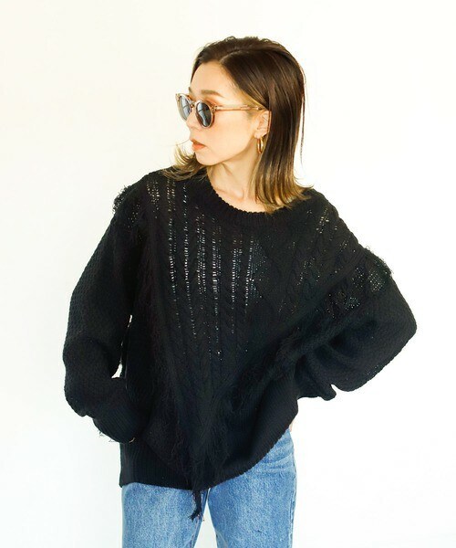 ♦ユニークなデザインがお洒落可愛いパッチワークニット 【特徴】 個性豊かなデザインニットが新登場。 着るだけで存在感の際立つパッチワークに フリンジが魅力的なニット。 これからの季節に着やすい軽めの着心地なので 1枚でサマになるのでスタイリングの 主役になること間違いなし♪ 【スタイリングポイント】 ホリデー定番のデニム合わせがおすすめ◎ プリーツパンツで大人カジュアルな リラックスコーデもスニーカーと合わせれば メリハリのあるスタイリングに♪