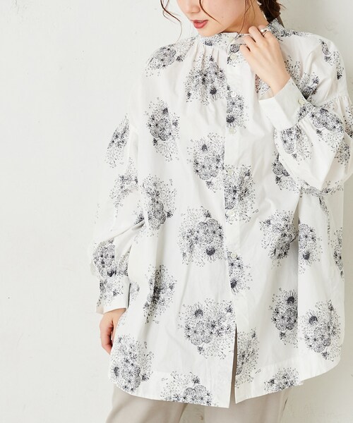 ピュアルセシン 2021 Spring collection 【Effortless garden】ピュアルらしさでもある天然繊維の素材感、丁寧な生活の中に取り入れてほしい着心地心弾むファッションを続けていけるように地球の恵みをテーマに変わりゆく時代にあったSSの提案◇エアリーなシルエットと花束柄が大人ナチュラルな1枚◇線描きの花束柄をよく見るとPUAL CE CINのロゴプリントがデザイナーこだわりポイント。ネックラインに施されたギャザーがふんわりと体を包み込む、リラックス感のある着心地ながらもバンドカラーがきちんと感を演出。ミドル丈のブラウスはワイドパンツやプリーツスカートでゆるっとコーデはもちろんボトムに合わせてインスタイルもおすすめです。前後どちらでも使える2WAY仕様なので、その日の気分に合わせて着こなせます。・よく見るとPUAL CE CINのロゴがプリントされた花束柄・立体感のあるギャザーでエアリーなシルエット・同柄のバッグ(NO.239925450)と合わせるのも◎・前後2WAY仕様※撮影場所やお使いのモニター環境により若干お色味が異なる場合がございます。特にロケの撮影では明るく見える傾向にございます。※予約商品はサンプルで撮影をしております。若干の仕様が変更になる場合がございますので予めご了承の上ご注文くださいますようお願いいたします。