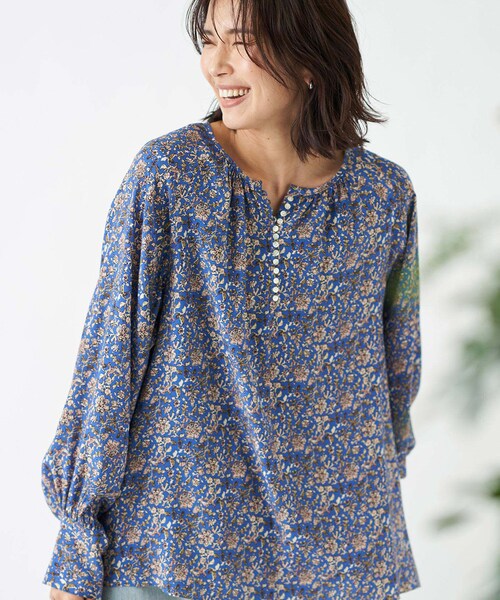 オリエンタルなムードが漂う更紗柄ブラウス今年トレンドの更紗柄のブラウスは、さらりと軽い着心地でこれからの季節にピッタリ!程良くボリュームを持たせた袖は女性らしさを演出してくれます。パンツスタイルに合わせたカジュアルミックスが今年らしくておすすめ。取り入れるだけで春夏の気分を盛り上げてくれる1枚です。・着こなしにアクセントを添えてくれる・ボトムスを選ばないミドル丈・旬なスタイリングが楽しめる・1枚あるとコーディネートの幅が広がるアイテム洗濯方法:手洗い透け感:なし裏地:なし伸縮性:なし生地の厚さ:普通モデル情報:H165 B83 W60 H84 着用サイズ:F詳細着用モデル:H159cm 着用サイズ:F#今買いアイテム#お出かけコーデ#主役アイテム#長袖#その他総柄#ミドル丈#リラックス#大人カジュアル#華やぎアイテム#映えトップス--------------------------------------------------------------------------------【注意点】※画像の商品は光の照射や角度、お使いのモニター環境により、 実物と色味が異なる場合がございます。あらかじめご了承下さいませ。--------------------------------------------------------------------------------【『♡』をクリックでお気に入り登録】・ラスト1点や再入荷の通知が届きます。--------------------------------------------------------------------------------