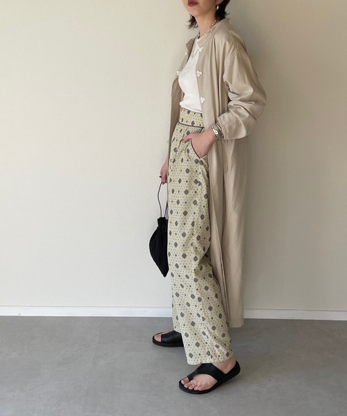 y/m×misatoプラスオンでこなれ感の出る柄パンツ■デザインウエストのパイピングのデザインが印象的なコモン柄パンツ落ち着いたシルエットと柄なので、カジュアルになり過ぎず綺麗に履き回して頂けます!ウエストは後ろがゴム仕様になっている為、履き心地も良くリラックスした着用感です。■コーディネートカットソーからシャツまで色々なトップスに合わせてコーディネートをお楽しみ頂けます【y/m×misato】@misato36気を張らず着られる素材感や、ナチュラルな雰囲気に合う色味のカラーバリエーション。 デザインにもこだわりつつ、日常に溶け込みやすいアイテムをお届けします。【公式instagram】@ym.you_and_me人気商品の再入荷情報や、発売前のアイテムもご紹介しています。【お買い物をよりお楽しみいただく為に】▼商品のお気に入り登録お気に入りアイテムの値下げ・再入荷・ラスト1点などの通知を受け取ることができます。▼ブランドのお気に入り登録新商品や再入荷、セール、クーポン配布などいち早くお得な情報を受け取ることができます。※撮影商品はサンプルの為、実際の仕様と異なる場合がございます。※画像の商品は光の照射や角度、お使いのモニター環境により、実物と色味が異なる場合がございます。品番:525ESG31-2930品名:コモン柄パイピングストレートパンツ