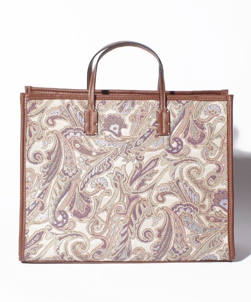 春らしいカラーリングが爽やかなジャガード素材のバック品の良いペイズリー柄はシーズン問わず活躍するお勧めな柄です。ハンドルと淵を配色でトリミングし、旬なバックに仕上がっています。荷物が少ないときも自立するのも嬉しいポイント◎マチも広めで、開口も広く荷物もたっぷり入ります。シンプルなデザインできれい目なスタイリングにも良く合います。もちろんデイリーのカジュアルスタイルにも◎いつものコーデにプラスするだけで一気にこなれ感を演出してくれます。【サイズ】横:約38㎝縦:約28㎝マチ:約14㎝内ポケット×2個ショルダー幅:約1.5㎝長さ:最長約110cm-最短約95cmINTERPLANET/actuel(インタープラネット/アクチュエル)・conceptいつだって私らしく、私自身のスタイルが決まる。。。時代や年齢に媚びない『らしさ』を纏って生きる女性へ。旬なベーシックと抜け感のあるカジュアルをMIX。そんな大人カジュアルコーデを提案します。・お気に入りの登録についてショップ、ブランドのお気に入り登録でクーポンやタイムセールの通知などお得な情報を受け取ることができます♪また、気になるアイテムのお気に入り登録でセールや再入荷の通知など受け取ることができます。