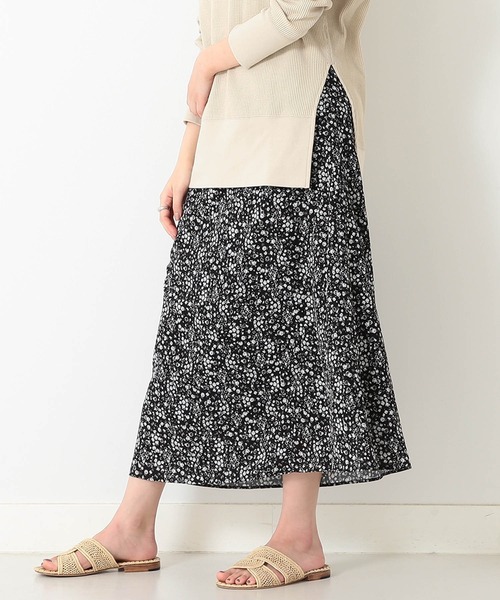 大人のためのフラワープリントフランスのテキスタイルメーカーDEVEAUX(デヴォー)社の生地を使用したフレアスカート。どこかレトロで優しいムードのモノトーンフラワープリントは大人の女性にマッチする上品な仕上がり。イエローカラーは着るだけで気分を盛り上げます。とろみがありながらもしっかりとした肉厚感のあるアムンゼン生地は柄により立体的な表情を出し、ニュアンス感のあるヴィンテージムードを感じさせてくれる優れもの。さりげなく切り替えを入れたフレアシルエットはドレープが美しく、上品スタイルにぴったりなスカートです。【BLACK】Model: H161 B78 W56 H84(cm) Size:36【YELLOW】BEAMS STAFF:H162:Size:38※洗濯: 手洗い※詳細は商品についている洗濯表示タグをご覧ください。