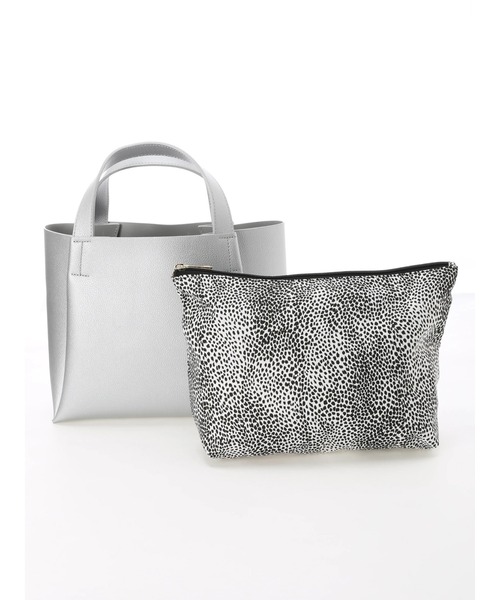 シボ感のある合成皮革のトートバッグに、柄ポーチがセットになったお得なアイテム◎インバッグのようにセットで使うのはもちろん、それぞれ単品使いでも活躍してくれます。手ごろなサイズ感でデイリーユースしやすいのも嬉しいポイント。