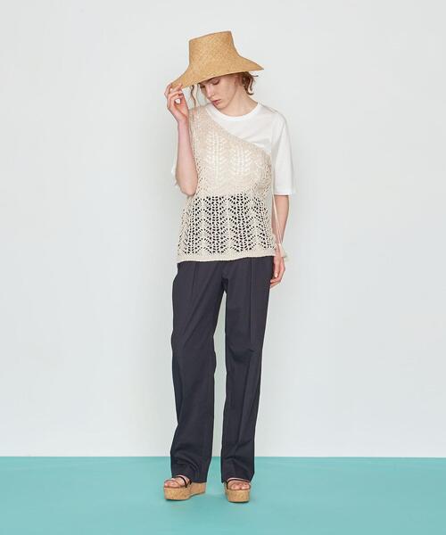 涼しげな印象の透かし柄編みのワンショルダーニット。美濃和紙と綿麻混紡素材を絡ませ、軽やかさと清涼感が特徴の丸みのある天然繊維を使用。襟ぐりに通したテープで着用時のフィット感の調整が可能。テープの先にほどこしたタッセルがアクセントとして効果的。インナーにシャツやTシャツをレイヤードした着こなしがおすすめです。【生地感】--------------------------裏地:なし透け感:あり生地の伸び:適度にあり光沢感:なし --------------------------※ ご自宅でのお洗濯の際は、洗濯表示を必ずご確認ください。店舗へお問い合わせの際は、全国のUNITED ARROWS各店舗まで下記の品名/品番をお申し付けください。品名:AM OPENWORK ONE/SLD 品番:87181830008