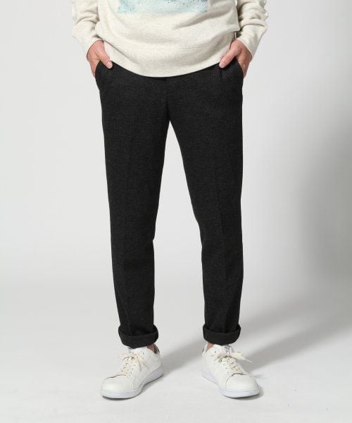 ★きれい目イージーパンツ★ 秋冬のスタイルに欠かせないウール素材のパンツ。見た目はオーソドックスなウールパンツですが、ウエストがギャザーでコード仕様になっており、サイズ調整が楽で穿き心地も抜群です。やや細身のシルエットでイージーパンツでありながらすっきりと穿けます。総柄ですがカラートーンが落ち着いているので、着合わせもしやすくコーディネートの幅が広いです。シャツやレザーシューズを合わせた定番のきれい目スタイルはもちろん、スニーカーやスウェットでカジュアルに寄せるスタイルが今期はおすすめです。店舗へのお問い合わせは下記の商品名と品番をお伝えください。商品名:ウールニットイージー品番:549533