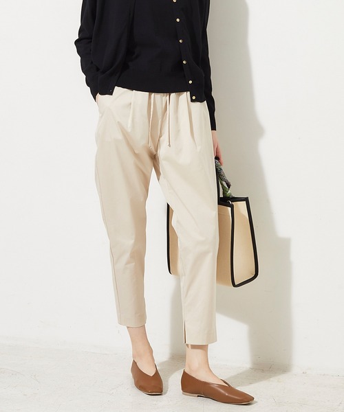 シルエットでほんのり差が付くテーパードパンツ 太もも周りには適度にゆとりがありながら裾にかけてキュッとすぼまったテーパードパンツ。 裾に入ったスリットが足元に抜け感をプラス。 ウエストはリラックス感のあるゴム仕立てです。 定番色から差し色まで幅広いカラー展開でご用意いたしました。 【スタイリング】 ブラウスにミュール、レザーバッグを合わせればキレイ目なオフィスカジュアルに仕上がります。 カットソーやフラットサンダル、スニーカーにトートバックでラフなお出かけスタイルにも。 ミュールやパンプスなどヒールのあるシューズとの合わせで女性らしく、フラットシューズでこなれ感のある印象に見せてくれます。 春には薄手のニットや、トレンチコート、シャツワンピース羽織ったコーディネートや、夏にはTシャツと合わせた大人カジュアルなコーディネートもおすすめ。 【色展開】 ・ブラック(黒 黒色) ・ブラウン(茶 茶色) ・ベージュ ・カーキ ・グリーン(緑 緑色) ・ネイビー(紺 紺色) 【サイズ展開】 61(Sサイズ相当) 64(Mサイズ相当) 67(Lサイズ相当) 【ブランド紹介】 自宅での仕事が増えたり、外出が制限され オン・オフの境目があいまいな時代を生きる 女性に向けた”NEW BASIC” シークはオン/オフ "NEW ノーマルな時代"の 自由な着こなしを楽しむ女性に向けて、 普遍的な"NEW BASIC”を提案するブランド だからルスークホリデイのベーシックは 多色展開していきます。 【お買い物をお得にもっと楽しんで頂くために】 ▼商品のお気に入り登録▼ 完売カラーの再入荷通知や、ラスト1点の通知、プライスダウンしたセール通知も受け取ることができます。 ▼ブランドのお気に入り登録▼ 新作や再入荷等、いち早くブランドのお得な情報を受け取ることができます!