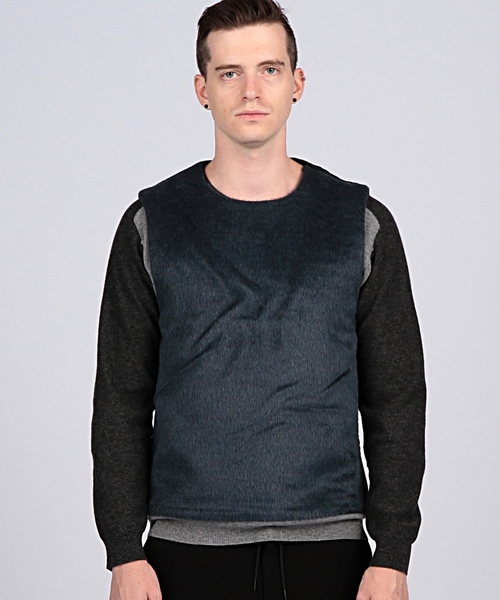 ■EN ROUTE(アン ルート)オリジナルコレクション アルパカシャギー アーマーベスト ウール/アルパカシャギーの素材を用いたアーマーデザインのプルオーバーベスト。 後身頃にはポリエステルキルトジャガードを使用し、前後の素材の切替と左側のジップで特徴を持たせました。アウターライクなコーディネートはもちろん、アウターやジャケットと組み合わせることでミドルインナーとしてのコーディネートもお勧めです。 店舗にお問い合わせの際は、EN ROUTE銀座店まで 下記の品名/品番をお申し付け下さい。 品名:ENR FUR N/SLV VT1 品番:7125-299-0573