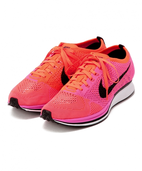■NIKE/ナイキフライニット レーサー パフォーマンスニットアッパーを全面に採用し、フィット性、軽量性を追及したレーシングシューズ。ソールは前足部のナイキズームエアユニットと若干固めのファイロンミッドソールによる軽量で反発力に優れたクッショニングで素早い蹴り出しと体重移動を実現します。また軽量なダイナミックフライワイヤーで足を包み込み、シューレースで調整できます。レーサーの能力を最大限に発揮する最上級レーシングモデル。 店舗にお問い合わせの際は、EN ROUTE銀座店まで下記の品名/品番をお申し付け下さい。品名:NIKE FLYKNIT RACER 品番:7161-499-0023