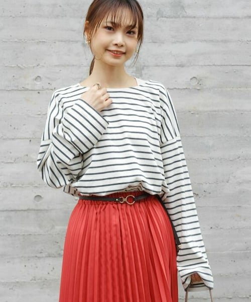 ボーダー柄がラフな印象のロングTシャツ。 ゆとりを持たせたシルエットでこなれ感のある1枚です。 リラックス感のあるサイジングとドロップショルダーで女性らしい印象に。 ワンピ―スとレイヤードして着こなしたり、 ワイドパンツや動きのあるロングスカートとも相性抜群です。 サイドスリット入りで抜け感を演出。 広めに開いた衿ぐりでデコルテラインを綺麗に見せてくれます。 肌触りの良いコットン100%。 柔らかい生地でハリ感も無いので重ね着もしやすく、華奢見え効果も◎ - - - - - - - - - - - - - - - - - - - - - - - - - - - - - - - - - 透け感:なし 裏地:なし 伸縮性:あり 光沢感:なし - - - - - - - - - - - - - - - - - - - - - - - - - - - - - - - - -