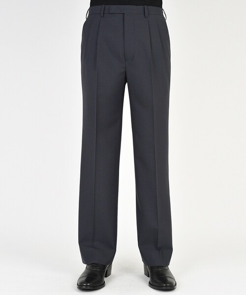 DETAIL■素材■タテ糸にスーパー130s糸、ヨコ糸にレギュラー糸を使用し、仕立て映えするように仕上げたウールギャバ素材です。ウール本来の柔らかさとなめらかで上品な光沢を持っています。黒はナノレベルの染色でより深い黒を表現し、高い撥水性と防汚性を備えています。■デザイン■きれいな表情でしなやかな風合いのウール素材を使用した2タックスリムフレアスラックス。ヒップから膝まではスリムシルエットで膝下のフレアラインを強調しています。