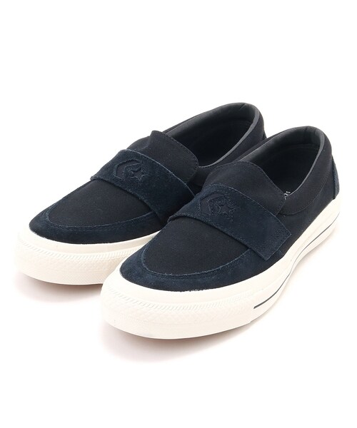 「ACTIVE HERITAGE」をテーマにした、「CONVERSE SKATEBOARDING」“スタンダードシリーズ”のアイテム。アーカイブのローファーをスケート仕様にアップデート。キャンバスをベースに、スエードをトウやかかとにパーツ使いしたデザイン。スケーティングだけでなく、幅広いスタイリングに活躍する一足。革靴のような佇まいを感じさせるブラックカラーで展開。・STABLE LAST:トウスプリングを低めに設定したラストを採用することで接地感を向上し、優れた安定性を実現。・TRICK PROTECTOR:トリック時に接触の多い箇所をスエードやラバー等で補強し、耐久性を向上。・DUAL TAPE:二重のラバーテープ構造を採用することで摩耗を軽減し、耐久性を向上。・EDGED OUTSOLE:摩擦のかかる方向に対して細かな溝を刻み込んだ意匠のラバーアウトソールを採用し、優れたグリップ性を実現。・E.V.A. CUP INSOLE:反発性と軽量性を高めた独自配合のE.V.A.カップインソールを搭載。メッシュ素材の表地と無数の通気孔により快適性も向上。▼気になる商品を登録ハートをクリックして《お気に入り登録》がオススメです!セール情報や完売カラーの再入荷通知、ラスト1点の通知などを受け取ることができます!▼ブランド新商品や再入荷など、ブランド情報をいち早く受け取ることができます!