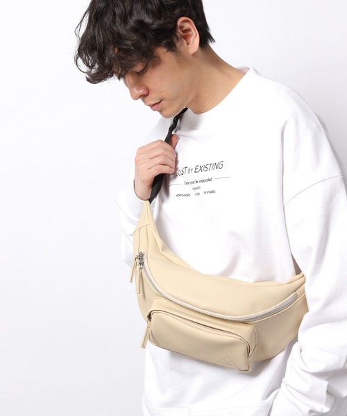 やわらかいフェイクレザー素材を使用した、ボディバッグ。カジュアルすぎないシンプルなデザインで、どんなスタイルにも合わせやすいアイテムです。フロントに大きめのポケットを配し、スマートフォンや定期などちょっとした小物の整理に便利◎