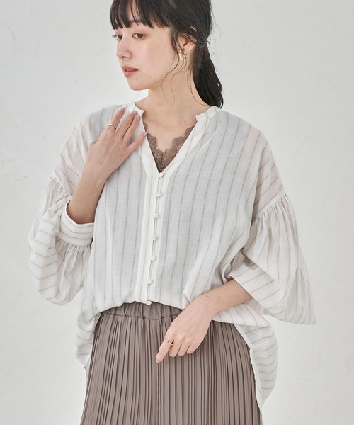 リラックス感のあるふわっとしたシルエットのブラウス。トレンドのボリュームスリーブがフェミニンな雰囲気を演出します。ほんのりシアーな風合いの素材で抜け感をプラス。きれいめなコーデにはもちろん、デニムに合わせても今っぽいバランスが叶います。● earth music&ecology ●(アース ミュージック&エコロジー)流行とナチュラル感を取り入れ、幅広い層に向けて発信するブランド。オシャレ着から通勤、カジュアルまで女性の様々なシーンで楽しんでいただけるナチュラルガーリッシュなアイテムを展開。 ▼ 商品のお気に入り登録がおすすめです ▼商品ページ内のハートマークをクリック。完売時の再入荷や、最後の1点の通知、コーディネート画像がアップされたとき、お得なお値下げの際の通知を受ける事ができます。【お知らせ】ページでも通知が確認できます。