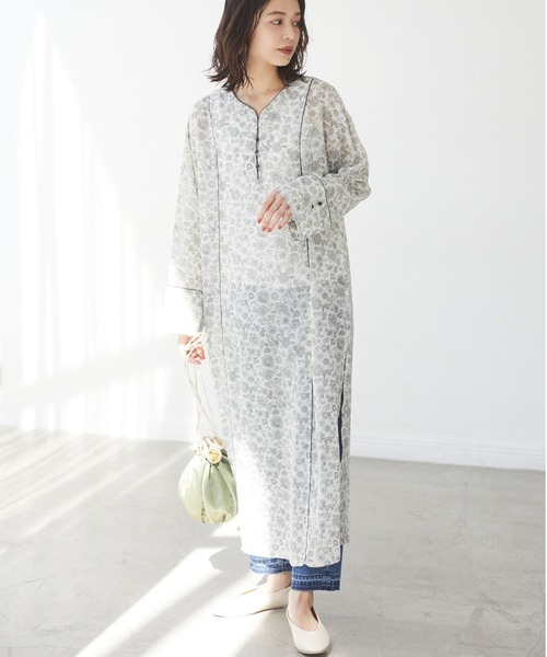 透け感のあるシフォンにモダンな花柄プリントをあしらったワンピース。バイカラーのパイピングや小さなくるみボタンも品良く映えるアクセントに。締め付けのないサックシルエットで、気負いなくスタイリング出来るのも嬉しいポイントです◎裾のサイドにはスリットを入れて、ロング丈ながらも軽やかなニュアンスをプラス。パンツなどを合わせた旬のレイヤードコーデにも活躍してくれるアイテムです。● Green Parks ●(グリーン パークス)20以上の人気ブランドを取り扱うアパレルセレクトショップ。ベーシックながらもさりげなくトレンドを取り入れたオリジナルブランドchocol raffine robeも展開。▼ 商品のお気に入り登録がおすすめです ▼商品ページ内のハートマークをクリック。完売時の再入荷や、最後の1点の通知、コーディネート画像がアップされたとき、お得なお値下げの際の通知を受ける事ができます。【お知らせ】ページでも通知が確認できます。