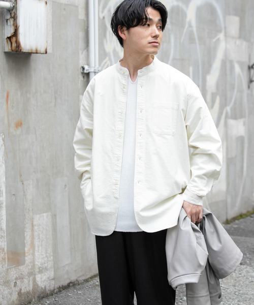 定番のオックス生地を使用したバンドカラーシャツ。裾をラウンドさせたデザインがスタイリングにアクセントを加えてくれ、羽織物としての着用はもちろん、アウターやスウェットなどのインナーとしても着用可能。トレンドのリラックス感あるシルエットに加え、オックス生地特有の程よく厚みのある生地は春に向けてライトアウター感覚での着用もおすすめです。-----------------------------透け感 : なし伸縮性 : なし裏地 : なし光沢 : なしポケット : なし-----------------------------※この商品(OFF)は、実際はイエローに近い色味です。※商品画像は、光の当たり具合やパソコンなどの閲覧環境により、実際の色味と異なって見える場合がございます。予めご了承ください。※商品の色味の目安は、商品単体の画像をご参照ください。