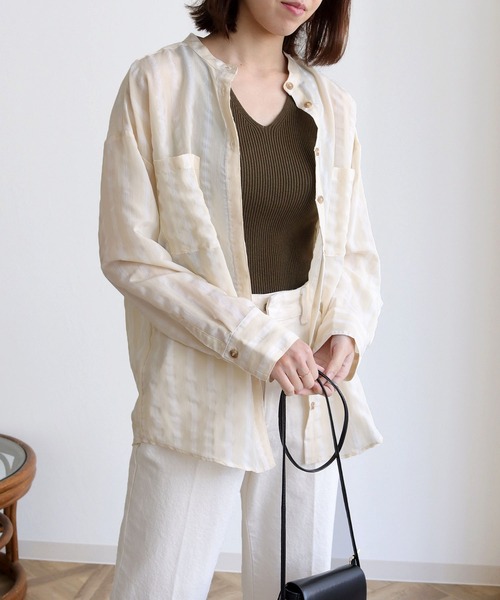 着るだけで爽やかな印象にしてくれるシアーシャツ2021ss collectionシーズンムードを高めてくれる、透け感のあるワッシャーのストライプシャツ。柔らかなカラーが春夏らしい着こなしを叶えてくれます。さらりとした肌触りの良い素材感で着心地も◎≪Styling≫きれいめな印象のシャツは、デニムできれいめカジュアルがおすすめです。ボタンを閉じて1枚でも、開けて羽織りとしても様々な着こなしが楽しめます。≪Fabric&Detail≫伸縮性・・・なし透け感・・・あり厚み・・・★☆☆☆☆▼《お気に入り登録》のおすすめ▼【商品のお気に入り登録】気になるアイテムのハートマークを押してお気に入り登録すると完売カラーの再入荷通知やラストの通知、セール通知を受け取ることができます。【ブランドのお気に入り登録】新商品や再入荷など、いち早くブランドのお得な情報を受け取ることができます。ぜひご利用いただきお買い物をお楽しみください。【She mo shelly 】(シーモシェリー) 365日happyでいたい。おしゃれでいたい。そんな気持ちを抱いている女の子「Shelly」。 She (彼女) mo (more) 輝く彼女にもっと会いたくなる服をコンセプトに。 そんな彼女が毎日着ていたい服「she★mo shelly(シー モ シェリー)」。 定番で使えるベーシックデザインからディティールに拘ったデザインまで、トレンド要素をバランス良く落とし込んだ商品ラインナップをご提案しています。※撮影場所により、実際の色味と若干異なる場合がございます。 あらかじめご了承くださいませ。