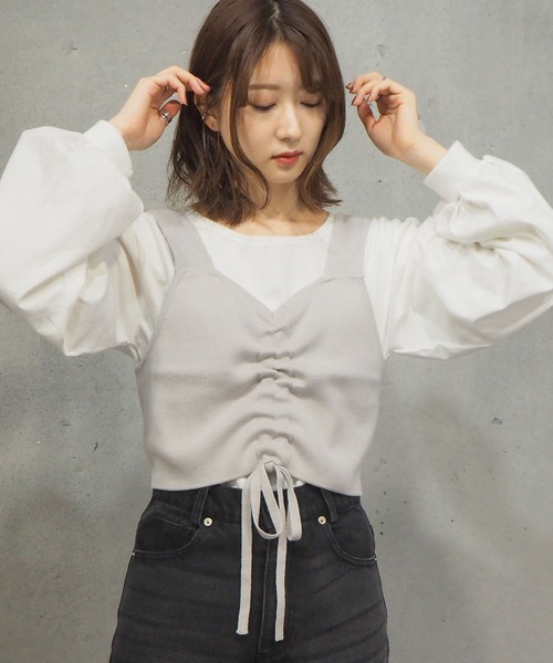 [2021SS] フロントをクシュっと絞ったビスチェが今っぽい、ロンTとのセットアイテム。 ギャザー効果でウェストを細く魅せ、スタイルアップが狙えるのも嬉しいポイント◎ ロンTのボリューム袖がよりボディをコンパクトで華奢な印象にまとめます。 チビTやハイネックトップスとのレイヤードもおすすめ。 夏は半袖シャツやタンクトップと合わせて、ロングシーズンお使いいただける優秀アイテムです。 [ロンTサイズ] 身幅:46 肩幅:40 総丈:58 袖丈:56 ※実店舗と発売時期が異なることがございます。あらかじめ御了承ください。 ※撮影場所やお使いのモニター環境により若干お色味が異なる場合がございます。 ※お取り扱いに関しましては、商品に付属のアテンションタグをご覧ください。 ※サイト上のカラー名と、お届け商品に記載されているカラー名が異なる場合がございます。 ※生産時期により色・素材・サイズ感など多少異なる場合がございます。予めご了承ください。 【お買い物をより楽しんで頂くために】 ▼商品のお気に入り登録 ♡のクリックで商品のお気に入り登録が完了! 完売カラー再入荷のお知らせ、ラスト1点のお知らせ、セールのお知らせを受け取ることができます。 ▼ブランドのお気に入り登録 新商品や再入荷のお知らせ等、いち早くブランドのお得な情報を受け取ることができます。