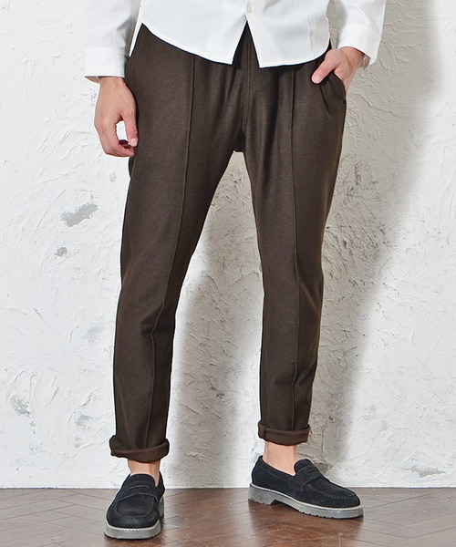 【JOKER】カルゼ素材ピンタックスラックス 上質なリラックスを実現する大人スラックス。程よくゆとりのあるサイズ感と、裾にかけて細くなるテーパードシルエットで、リラックスした大人の余裕を演出。 また、センタープレスを入れることで、ドレッシーな大人の品格感じる仕上がりに。 生地もしっかりとした生地感で、重厚感ただようひと品に。 Tシャツと合わせてカジュアルにも、シャツやジャケットと合わせてキレイめにもキマるコーディネートの強い味方に。 あなたも大人の上質なリラックス、体験してみませんか? ■生地の伸縮性 ・・・ やや伸縮します。 ■生地の透け感 ・・・ 透けません。 ■生地の厚み ・・・ やや厚いです。 ■着用のサイズ感 ・・・ ゆとりのあるサイズ感です。 ■裏地の有無 ・・・ 無し。 ============================= 【お買い物をもっと便利に楽しく♪】 ■商品のお気に入り登録をすると 完売カラー・サイズの再入荷通知や、ラスト1点の通知、お得なセール情報も受け取ることができます! ■ブランドのお気に入り登録をすると 新商品や再入荷のお知らせなどいち早くブランドの最新情報を受け取ることができますのでご登録をオススメします!
