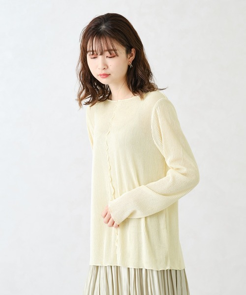 メローなデザインとこなれたカラーの組み合わせがフェミニンなカットソー。 細かいリブとセンターの切替がレイヤードスタイルのアクセントに。 体のラインを拾わないサイズ感とバックスリットでインでもアウトでも着回しできる優秀アイテム。